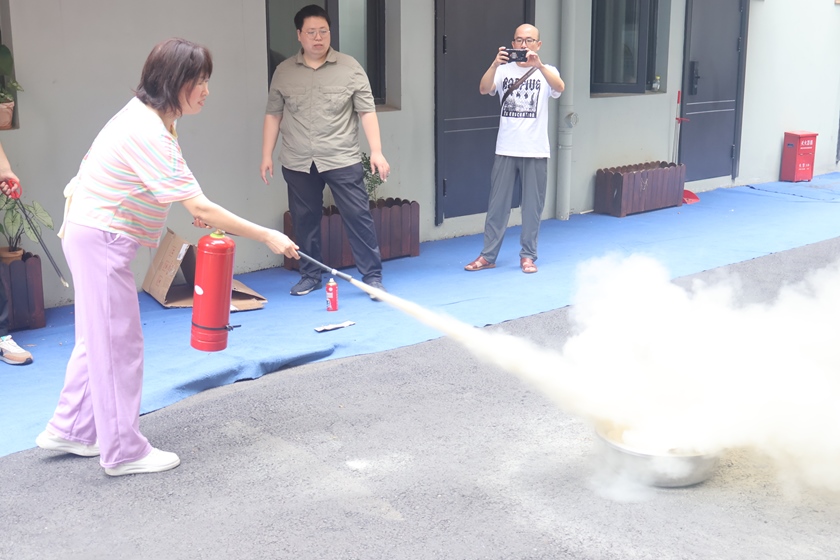 隨著一陣急促的警報聲,2023年度公寓消防演練拉開了序幕。聽到警報聲,公寓管家第一時間確認(rèn)火情并逐個樓層通知租戶撤離,租戶用濕毛巾捂著口鼻,彎著腰,沿著公寓就近樓梯口有序地撤離到公寓一層的安全地帶,同步,公寓管家撥打119火警電話報警。人員全部撤離后,公寓管家立即清點(diǎn)租客人數(shù),確保無一人受困。隨后在公寓一樓花園,進(jìn)行了滅火器實(shí)操演練,安全員向大家講解了滅火器使用規(guī)范,公寓租客代表和公司部分員工進(jìn)行了滅火器實(shí)操。